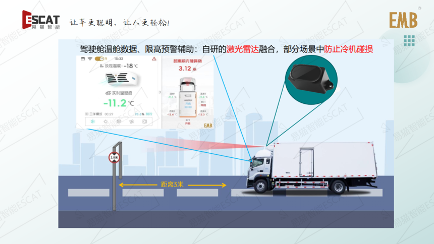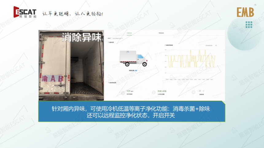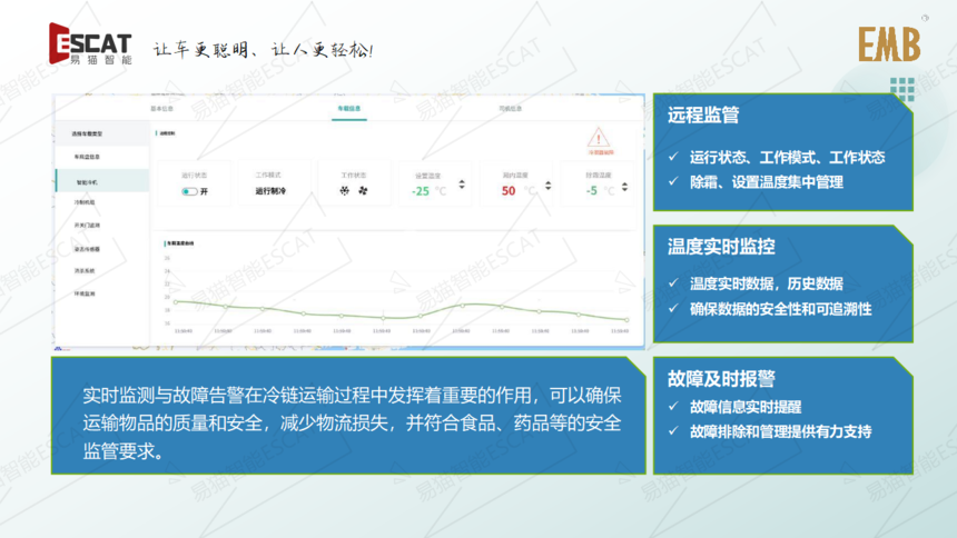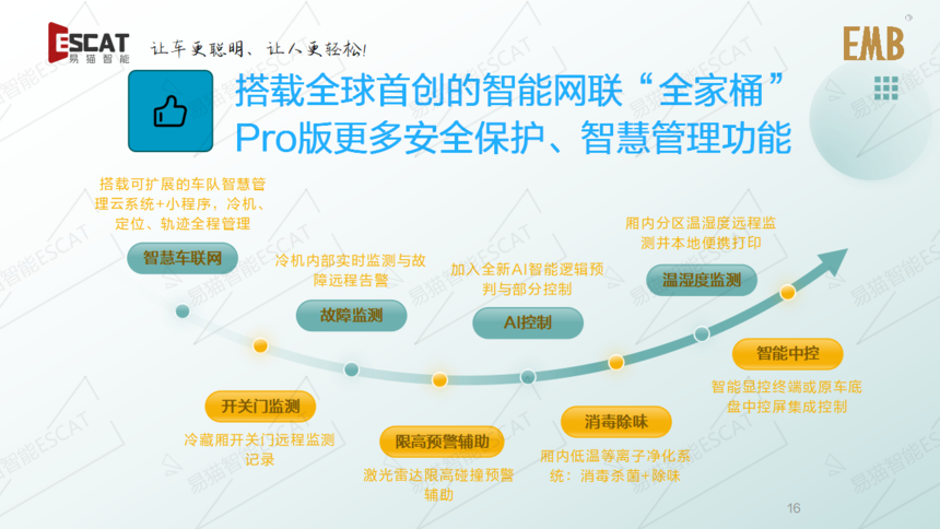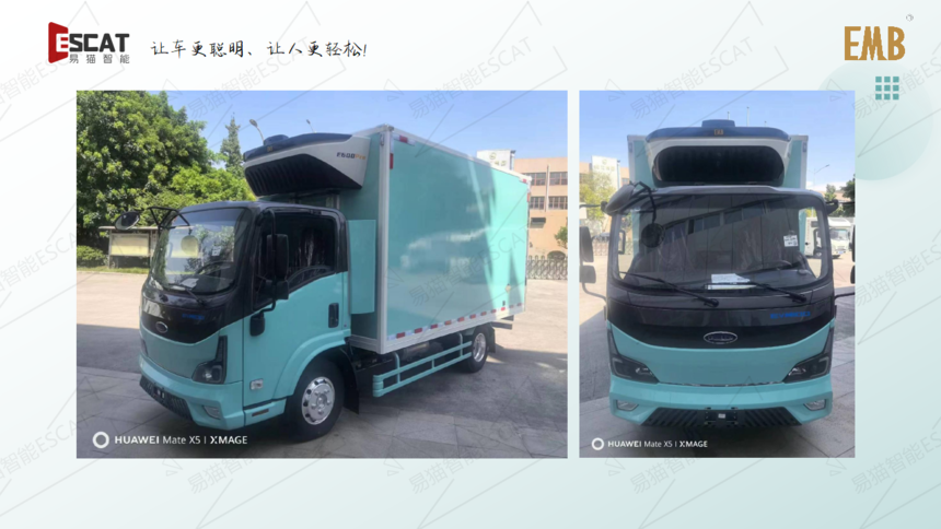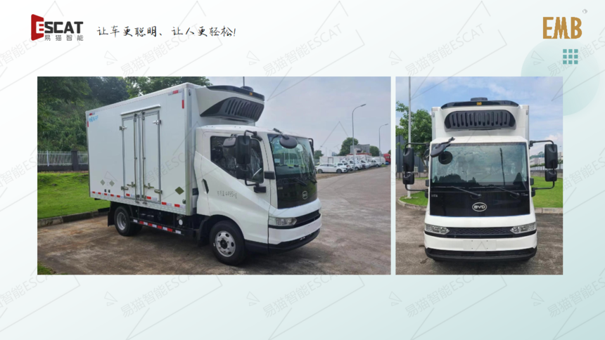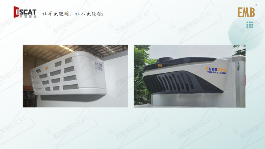 智 能 网 联 介 绍 星轨凝寒,睿控启航,质坚恒稳,悠途逐光! 选择EMB新能源电动冷机 E600 Pro 一体机,让车更聪明、让人更轻松!开启高效、绿色、智能的冷链运输之旅!